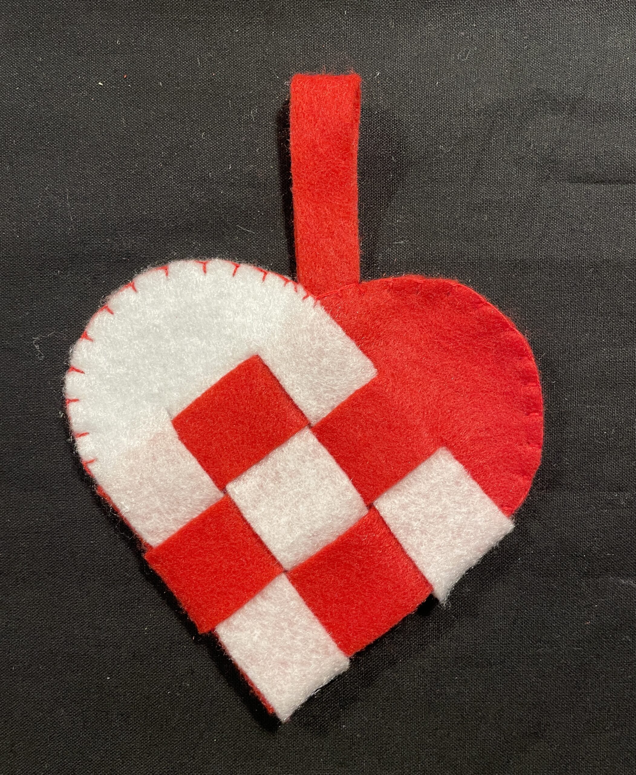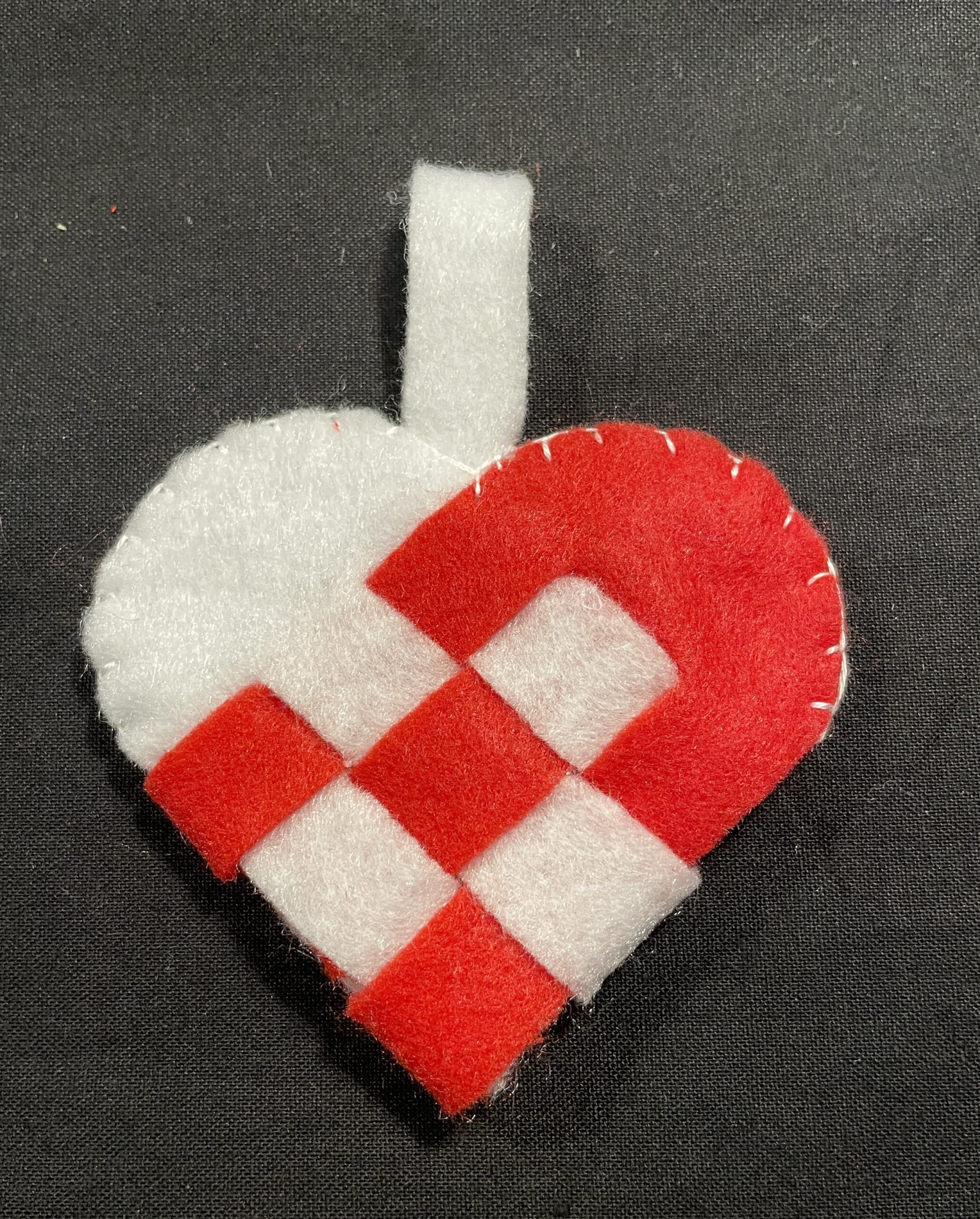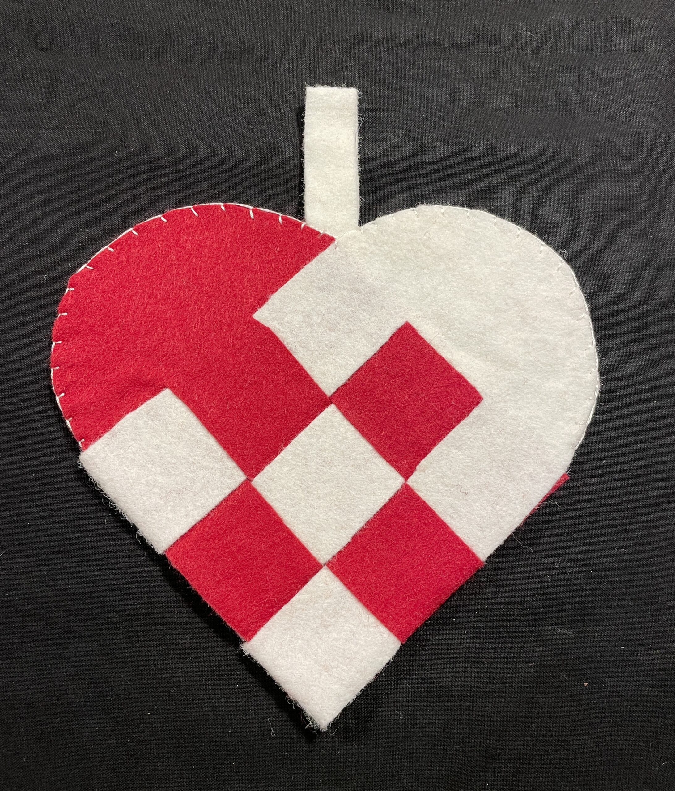 RØDT/HVIDT FLETTET HJERTE I FILT