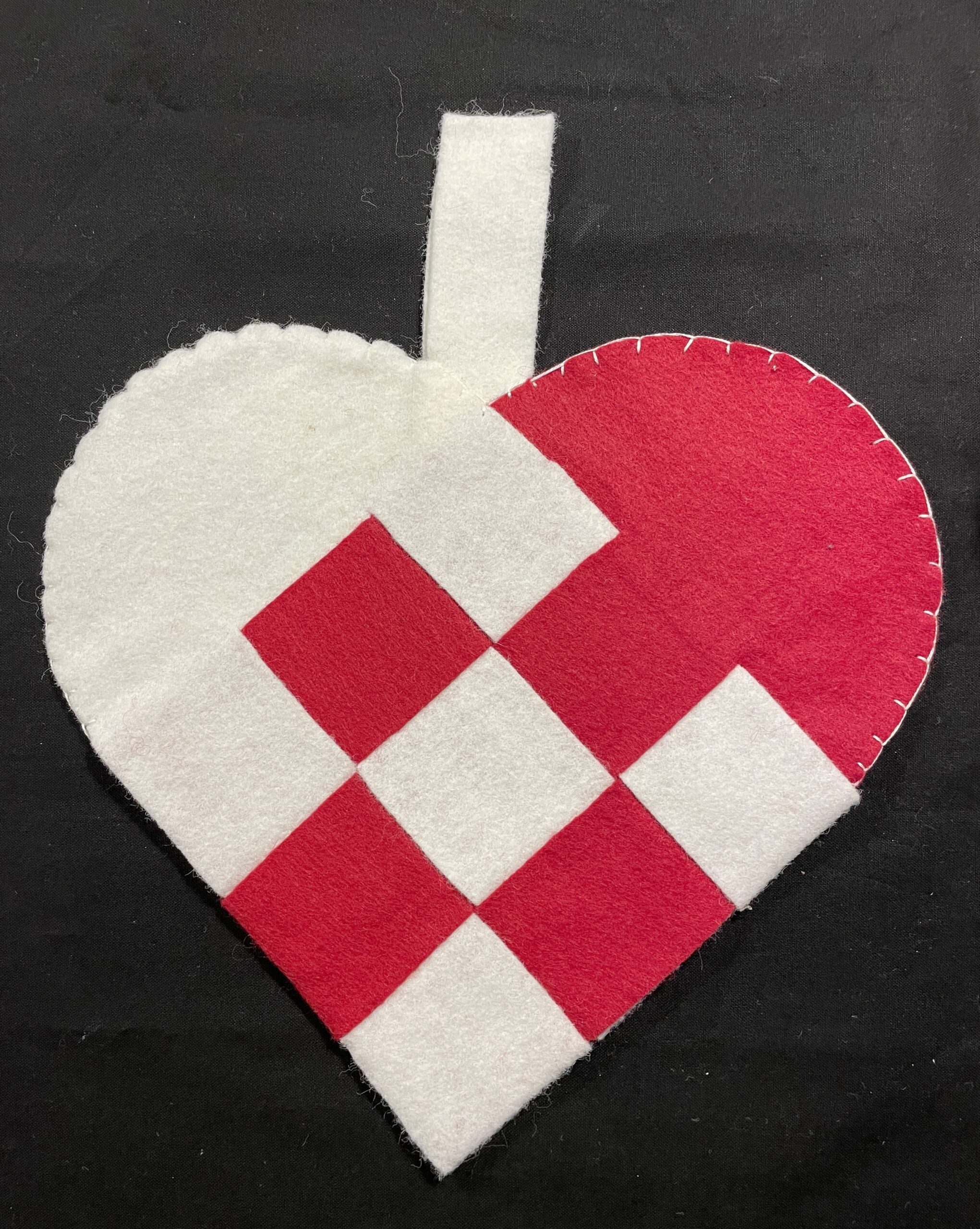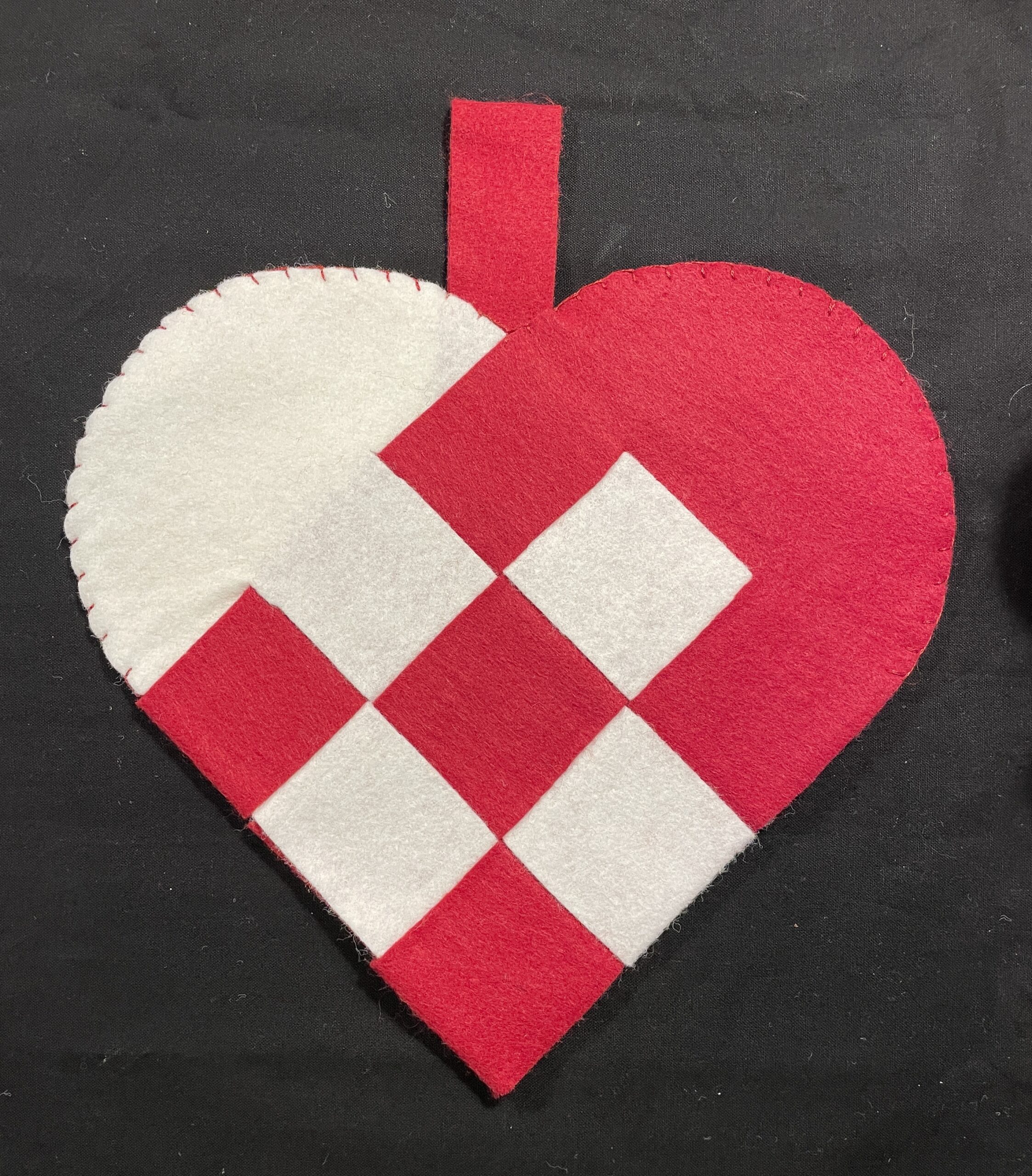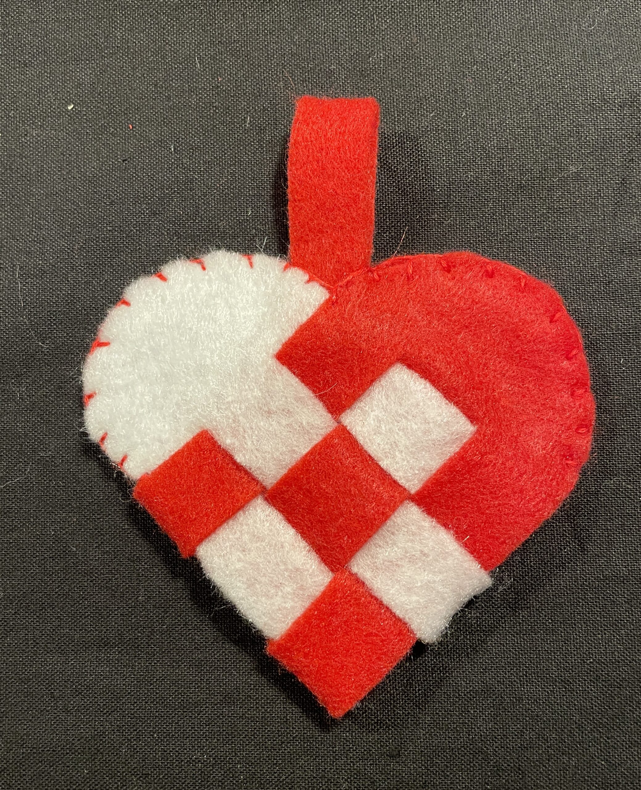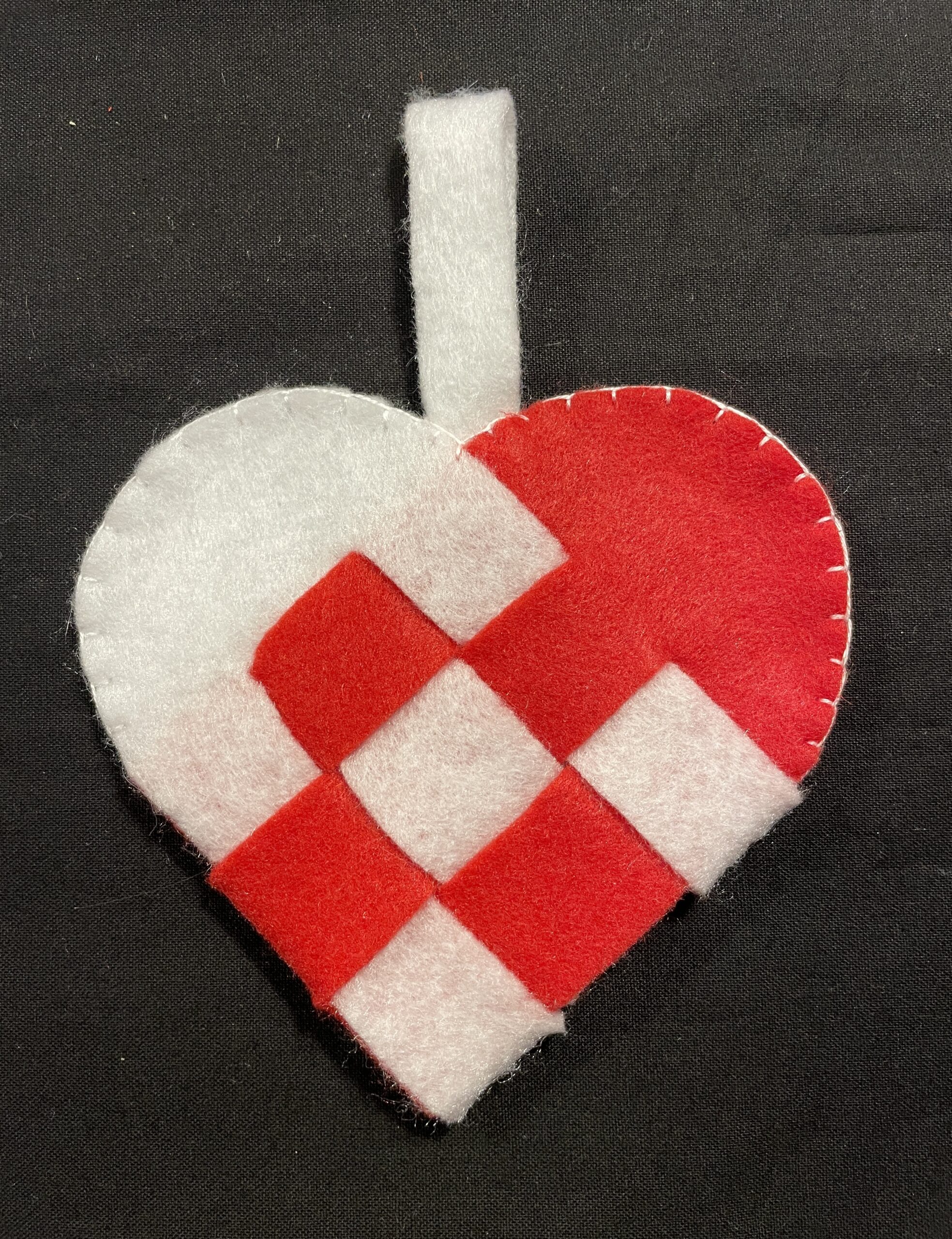 RØDT/HVIDT FLETTET HJERTE I FILT